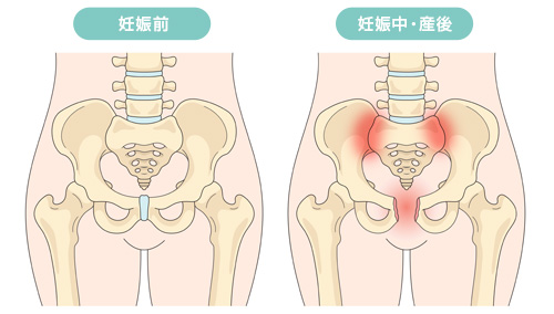 胎児の成長とともにお腹が張り出し身体の重心が前に出ます。その状態で身体を支えるため腰の筋肉が疲労して痛みを起こします。出産後も反り腰のままになり、骨盤が前に傾いたまま固定されてしまい頑固な腰痛を起こします。