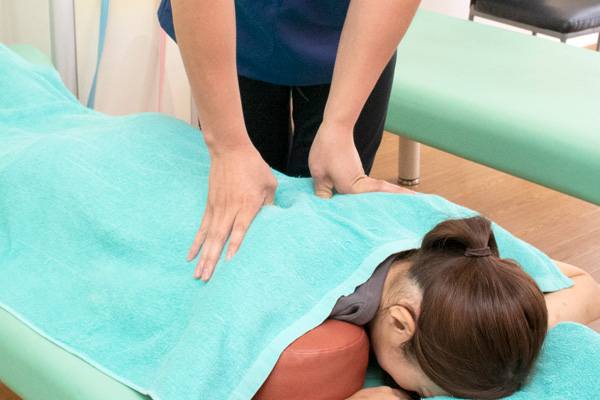肩や腰の痛みが強い方は、マッサージなど手技でしっかりと筋肉をほぐしてから、姿勢を整える施術を行います。